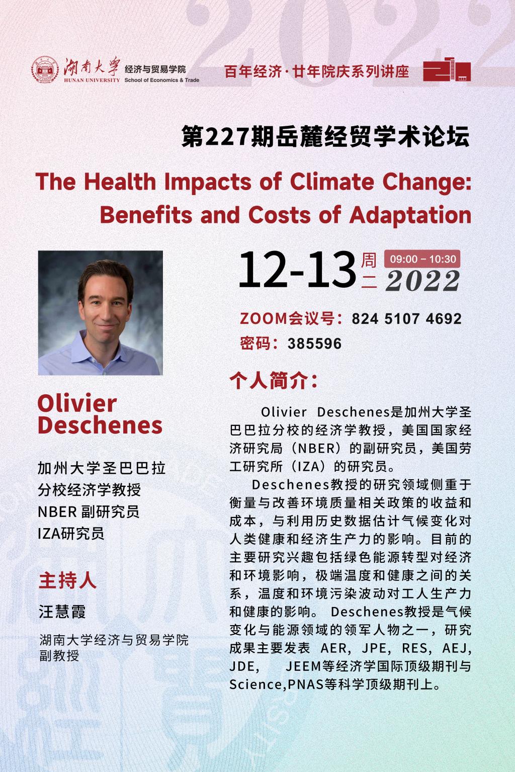 Olivier Deschenes:The Health Impacts of Climate Change: Benefits and Costs of Adaptation