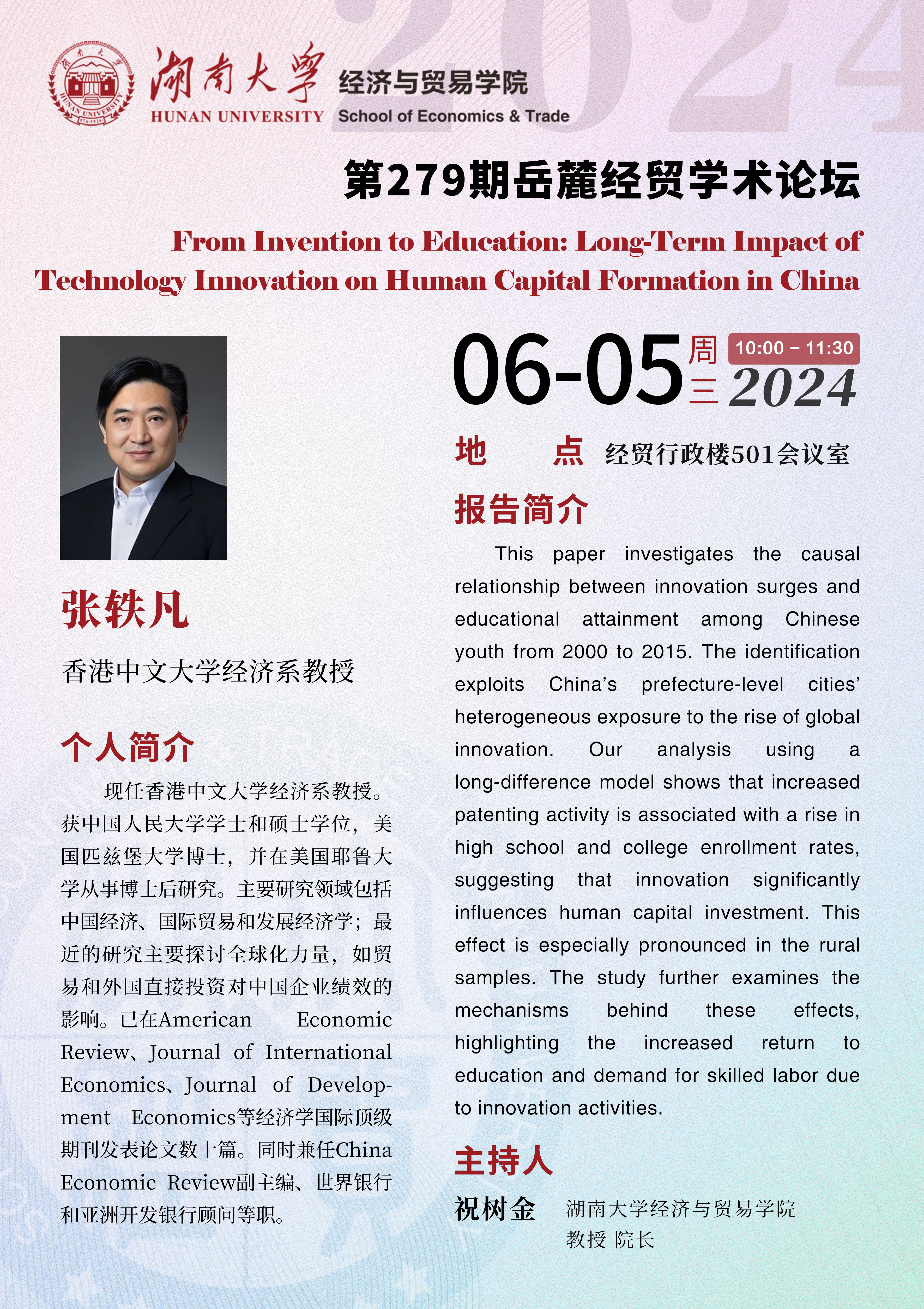 张轶凡:From Invention to Education: Long-Term Impact of Technology Innovation on Human Capital Formation in China