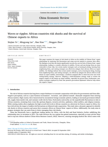 叶新建博士与赖明勇教授、肖皓教授和中南大学周定根讲师合著论文“Waves or ripples: African countries risk shocks and the survival of Chinese exports to Africa”被《China Economic Review》(CER)录用。