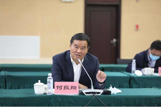 在超算中心,何报翔出席中非经贸合作研究院工作座谈会,听取研究院总体情况介绍和各研究基地工作汇报,高度肯定研究院所取得的成绩,代表省政府感谢各有关高校及专家教授所作努力。何报翔强调,中非经贸合作是一篇大文章,既有历史传承,更有政治、外交、经济等现实意义。习近平总书记提出打造中非命运共同体,这为我们开展中非经贸合作和研究指明了方向。