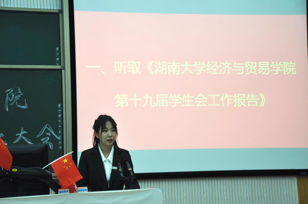 经贸院第十九届学生会主席项佳宁作工作报告