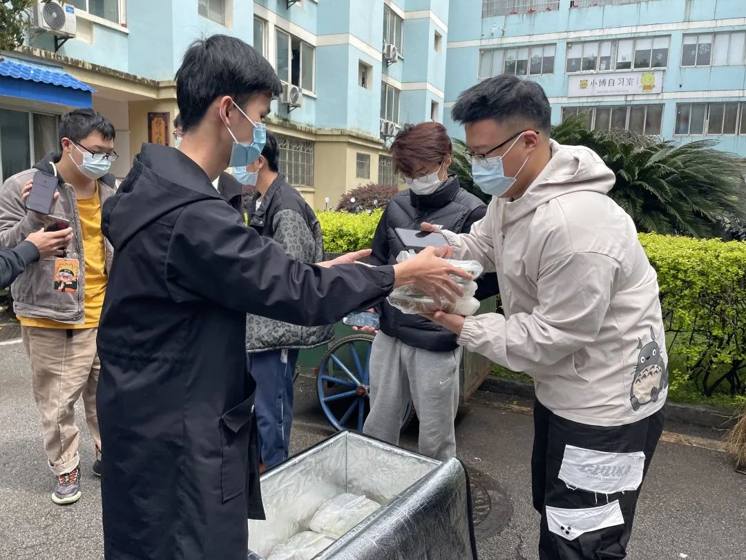 300名学生住在望麓桥学生公寓,同学们无法出宿舍用餐,“特殊时期食堂供应还没跟上,为了学生能尽快吃上饭,学院决定组织自行送餐。”经贸院党委副书记李曼介绍。