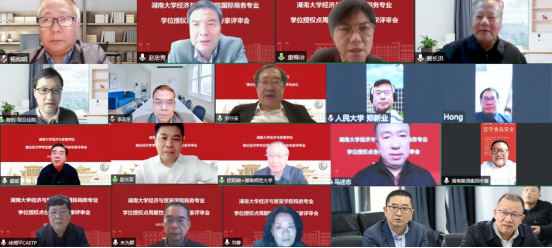 国际商务专业评审组由山东财经大学校长赵忠秀担任组长,成员有南开大学经济学院院长盛斌、浙江大学中国数字贸易研究院院长马述忠、中非经贸合作研究促进会会长徐湘平、湖南省粮油食品进出口集团有限公司董事长叶蓁四位专家。