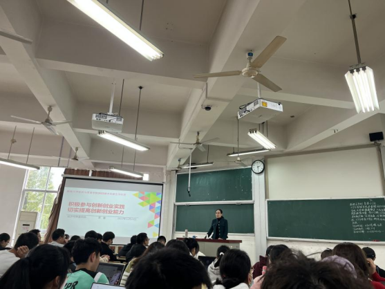 李曼从教育部、学校、学院三个层面讲解了创新创业的基本情况,介绍了学校创新创业的开展情况和工作成效,并结合时代形势和国家需要,将“互联网+” 、“挑战杯”、“小挑”三项竞赛做了介绍,讲解了不同类型竞赛该如何针对性提前准备,强调了创新创业教育促进高质量人才培养的重要性。同时鼓励同学们要积极参与创新创业的赛事,投身创新创业实践,提高自身的创新能力。