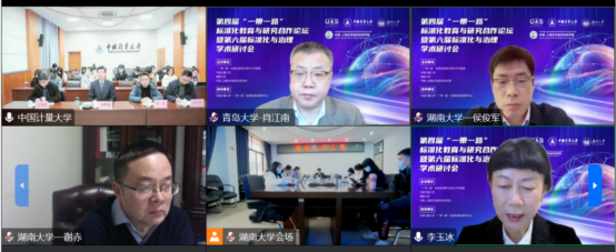 副校长谢赤、青岛大学副校长肖江南、“一带一路”标准化教育与研究大学联盟理事长宋明顺、国家市场监督管理总局标准创新管理司副司长李玉冰分别致辞。中国工程院院士邬贺铨,中国标准化专家委员会副主任张纲,中国标准化协会理事长于欣丽,欧洲标准化学会主席Henk de Vries做主旨演讲。