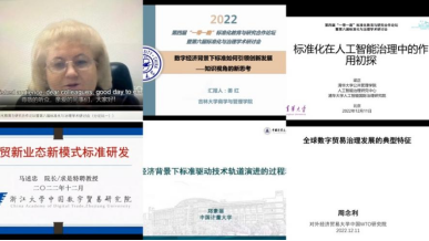 院长侯俊军主持。摩尔多瓦国立医药大学第一副校长Olga Cernetchi,浙江大学中国数字贸易研究院院长马述忠,清华大学中国科技政策研究中心副主任梁正,吉林大学商学与管理学院教授姜红,对外经济贸易大学中国WTO研究院院长助理周念利,中国计量大学经济管理学院教授郑素丽做出报告。各位学者结合了数字经济背景、人工智能治理、外贸新业态新模式、全球数字贸易治理等不同内容,对新时代的标准化发展进行了探讨。