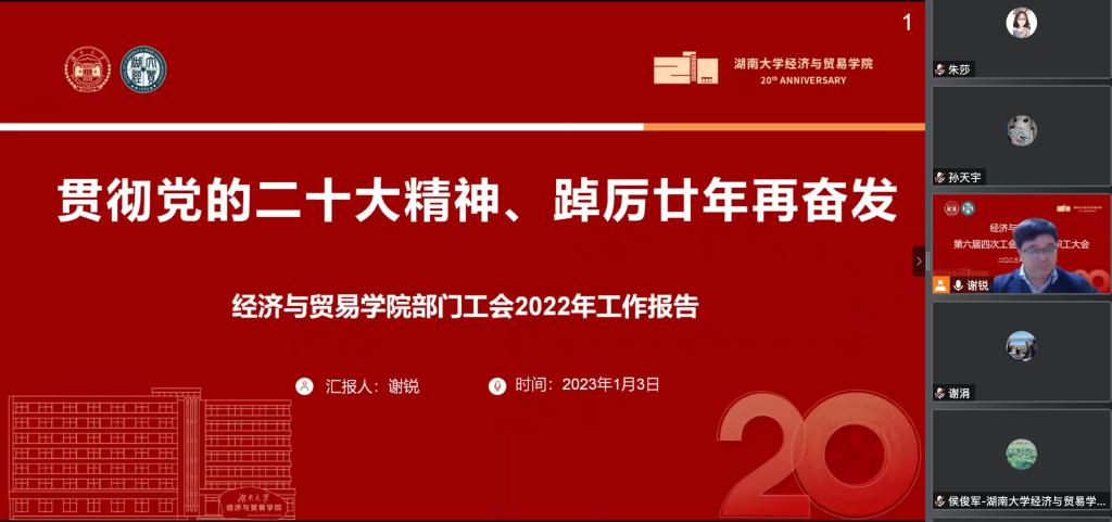 六届四次工会会员、教职工大会召开。会议以在线形式举行,全体工会会员、教职员工参加,学院部门工会主席谢锐主持会议。