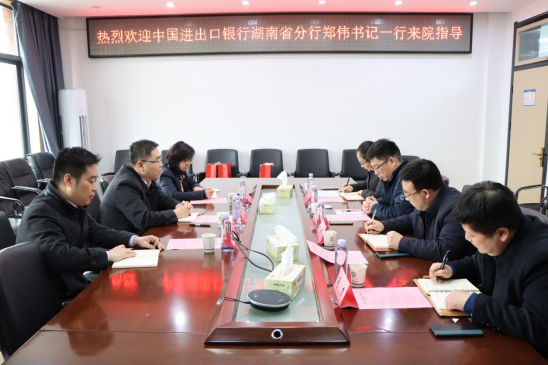 2月7日下午,中国进出口银行湖南省分行党委书记郑伟、人力资源处处长向小敏、副处长黄海军一行3人来成人抖音 探讨校企合作事宜。学院院长侯俊军、党委书记祝树金、副书记李曼、办公室主任肖力参加会谈。