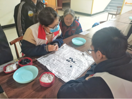 志愿者们为老人下棋解闷