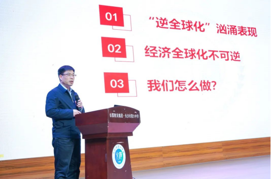 侯俊军以“经济全球化还能继续吗?”为题为学生作了精彩演讲,他结合当下全球局势及经济形势,从专业学者的高度对经济全球化的形成、重要意义及其发展趋势等方面进行了全面且深入浅出的解读,现场学生氛围高涨,反响热烈。随后,双方在学校进行了成人抖音