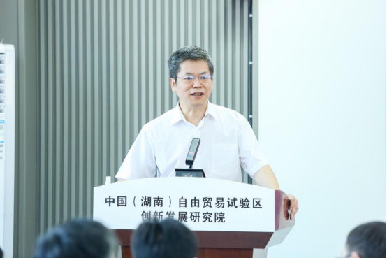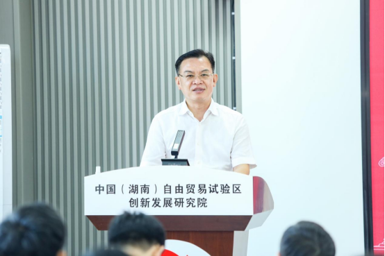 沈裕谋厅长在致辞中表示,湖南自贸试验区作为实现“三高四新”美好蓝图的重要平台,要以成立自贸研究院为契机,进一步深化改革创新,形成更多在全国复制推广的制度创新成果。他希望,自贸研究院要整合各方资源,集聚省内外高校、研究机构、商协会、企业等研究力量,统筹发挥好智库专家作用,创新研究机制;要聚焦改革创新,着眼国家所需、问题所在、人民所盼、未来所向,积极开展前瞻性、突破性、关键性的研究,深入破解自贸试验区改革发展难题;要加强人才培养,将研究院打造成为自贸工作人员的理论学习基地和专家、学者的实践交流平台,持续培养一批又一批高水平的自贸试验区研究团队。
