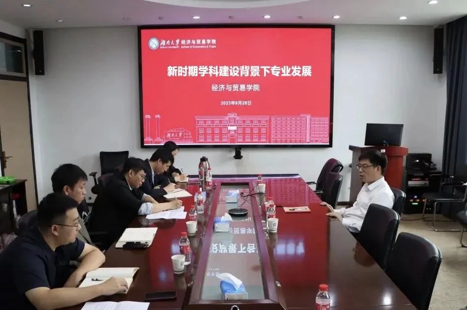 在615会议室举办“新时期学科建设背景下专业发展”座谈会。院长侯俊军与国经贸系、经济学系、财政税务系、数字经济系主任、副主任、院党政办主任进行面对面交流,共话学院新时期学科建设发展背景下各系发展思路和亟待解决的问题。