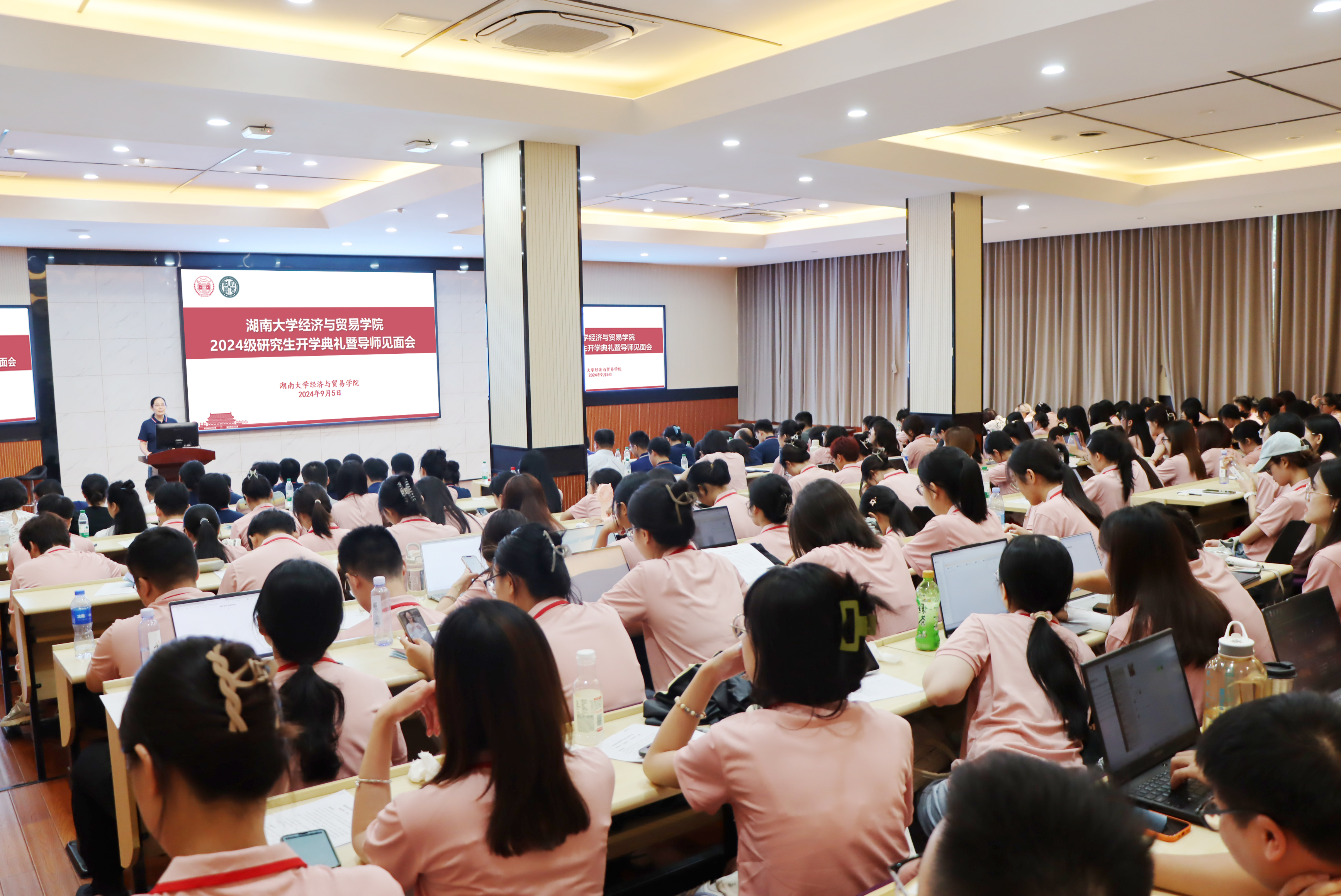 2024级研究生开学典礼暨导师见面会在食堂2楼报告厅举行。学院领导邓利华、祝树金、曹二保、肖皓、李曼、谢锐,导师代表、教辅人员50余人及2024级全体研究生参加会议。开学典礼和导师见面会由党委副书记李曼和副院长肖皓主持。