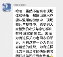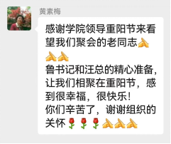 学院党委书记邓利华、院长祝树金、副处级组织员鲁丽梅与老同志们亲切交流,表达了对他们的感谢和祝福。活动结束时,老同志们分享了活动感受,气氛非常融洽。通过此次活动,不仅让老同志感受到了来自学院的关怀与温暖,也进一步增强了大家的凝聚力和归属感。