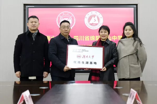 前往绵阳南山中学开展座谈会,并进行“优质生源基地”授牌仪式。