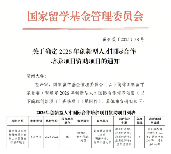 “数字经济与可持续发展创新型人才国际合作培养项目”执行期为三年,将依托多所世界知名高校开展深度合作,每年资助3名联合培养博士研究生、2名访问学者及1名博士后赴外开展合作研究与交流,资助内容包括一次往返国际旅费及资助期内的奖学金。