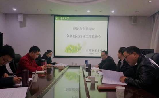 会议由祝树金副院长主持,院长张亚斌教授、党委书记郭平教授、副院长许和连教授和青年老师代表肖皓、谢锐、谢里、邓卫广及学院双创工作室指导老师李曼、申慧敏、蔡捷萍参加了会议。