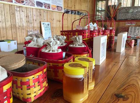 通过与“花瑶花”文创基地的负责人交流,调研小组了解到“花瑶挑花”为手工制品,主要为衣服或围裙,其上图案主要是以“马”、“龙”、“猫”等动物为主。创作人员主要是村里60岁以上的老年妇女,从事人员规模约400-500人。据了解,手工花瑶挑花制品需要耗费大量的时间与精力,以围裙为例,完成一个手织围裙需要大约38万针,耗时约6个月。“花瑶挑花”变现的形式主要是放置在大米包装上,与大米一起搭配出售。“呜哇山歌”以前是瑶族人民劳作时的劳动号子,如今作为农家乐篝火晚会重要组成内容为村里带来收益。成人抖音