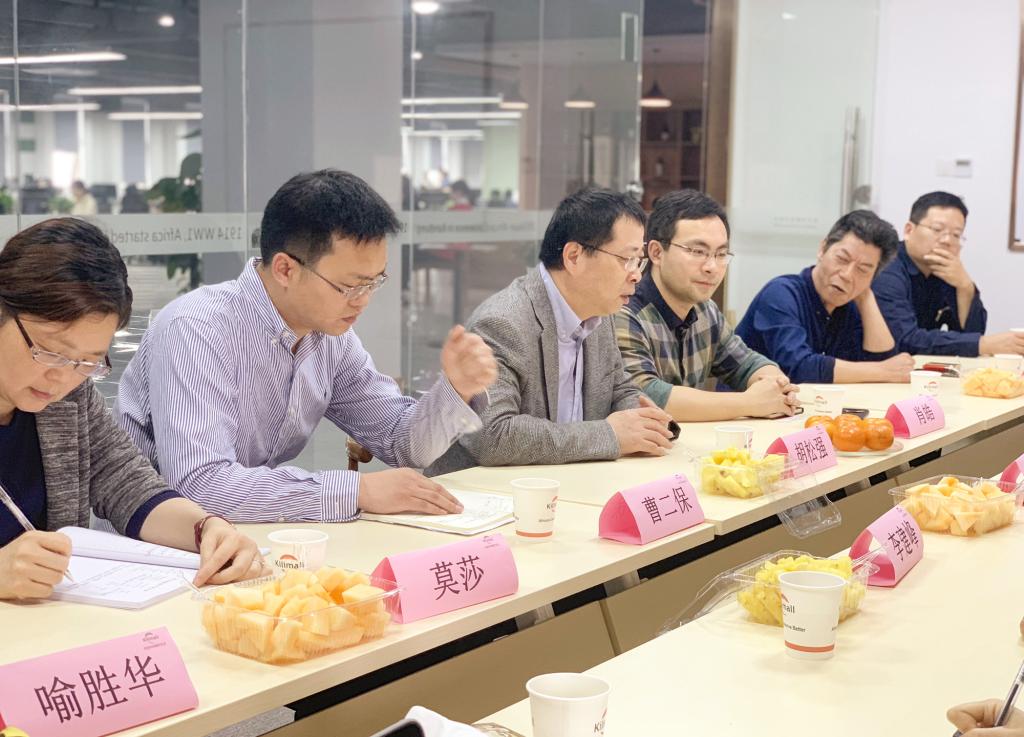 副院长肖皓教授、曹二保教授和Kilimall公司杨涛总经理、关键副总经理分别就学院与公司的发展情况、人才培养情况、基层党建工作情况等进行了介绍和交流。肖院长和曹院长都表达了与Kilimall公司加强产学研合作、共同开展跨境电商方面的科学研究、共同培养优秀商务人才的愿望。