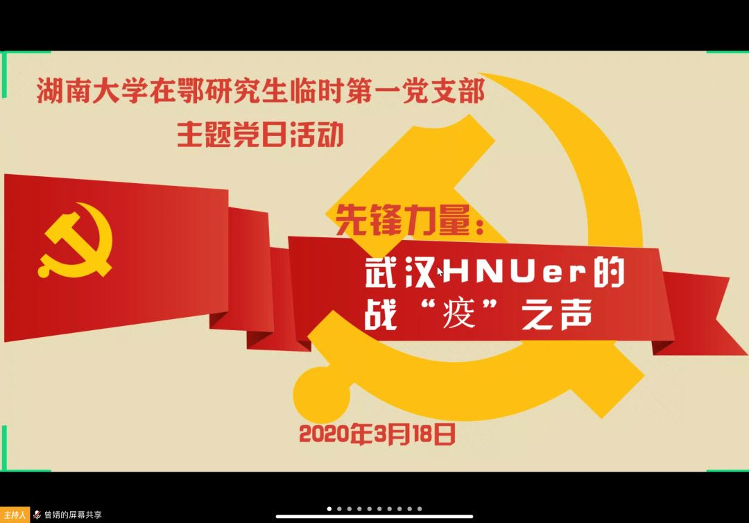 成立了9个在鄂研究生临时党支部,其中第一党支部由武汉市30名党员组成,对接武汉市95名研究生,临时党支部书记由经贸院研究生辅导员曾婧担任。