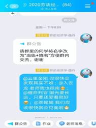 经贸院的老师共同抗“疫”,开展线上课堂,不忘深入开展教育教学改革,将课程思政落到实处。曲丹老师教学劳动经济学以来坚持以思政教育为根本,除了要求同学们除了掌握基本的理论知识外,更是引导学生学会发现问题以及分析问题和解决问题的方法,培养和提升科学的经济学思维,更深层次地解读国家相关政策。