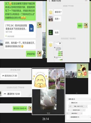 在此次“超长假期”中,团队成员在曹二保老师的带领下,进行了常态化的小组研讨(2-3人/组),团队成员每日相互督促、勉励,均能够在假期中静心科研,因此在党员交流沟通环节,各位党员结合自身实际情况,分别就居家防控期间学术、学业、生活的内容进行了交流沟通。研三党员刘岚茜同志提出寒假时间面临着论文撰写与毕业的压力,通过与曹老师语音通话等方式沟通论文进展,目前论文已经成功提交,问题已经得到了解决。陈光智同志提出延迟开学可能会影响出国深造手续的办理,在时间协调上较为困难,但是作为一名共产党员,会严格遵守学校的规定,在家做好防护,不提前返校,静心等待开学通知。研二党员张慧媛同志提出在家学习过程中通过语音通话、视频通话及时与同门沟通可以解决项目书写信息不对称的问题,使用曹老师推荐的Sci-hub网站解决了下载外文文献不流畅的问题,目前可以高效的进行项目书写。研一党员张正华同志提出居家学习期间较为充实,一方面使用Forest App帮助自己提高网课学习效率;另一方面与同门之间交流沟通学术进展督促自己潜心科研。