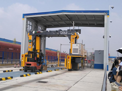 海关查验工作人员向我们一一讲解了有关工作流程和专业的机械设备。其中,货物检验中心的集装箱射线扫描仪——H986系统给大家留下了深刻的印象。H986集装箱检查设备对集装箱货物进行扫描成像,通过分析机检图像判断实货与申报是否相符的一种新型查验手段,该设备的使用,在一定程度上改变了海关人工掏箱查验费时、费力的局面,大大提高了海关查验的工作效率和准确性,被誉为海关查验手段的革命。