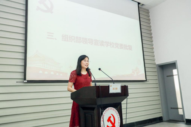 学校党委组织部副部长钟叶姣同志宣读了学校党委批复。兄弟单位代表财院校区党工委副书记黄红立、金融与统计学院党委书记聂国军同志宣读了贺信。