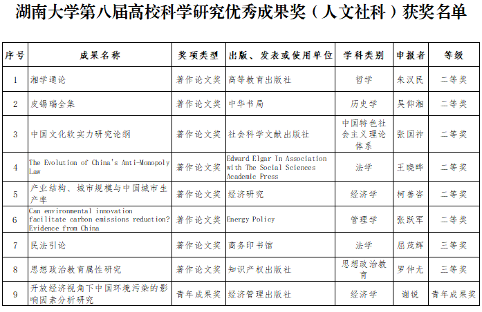 教育部第八届高等学校科学研究优秀成果奖(人文社会科学)满额申报并全部通过资格审查,进入会评17项。