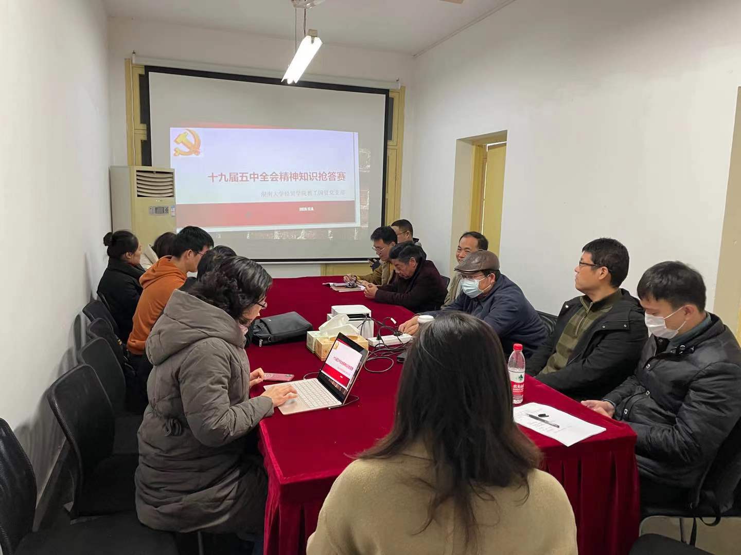随后,国贸党支部在支部书记莫莎老师的组织下举行了“学习十九届五中全会精神知识抢答赛”,莫莎老师根据全会精神精心准备了20道题,老师们争先恐后答题,现场气氛紧张热烈,欢声笑语不断,最终邓玉萍老师一举夺得第一名。大家纷纷表示,这种学习形式非常好,能帮助大家更好地领会五中全会精神。