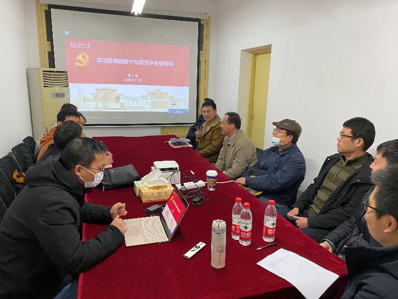 在学习交流环节,与会支部党员结合教学科研工作实际,深入交流学习五中全会精神的认识、体会和收获。大家纷纷表示,党的十九届五中全会是在全面建成小康社会胜利在望、全面建设社会主义现代化国家新征程即将开启的重要历史时刻召开的一次十分重要的会议。要坚持党的全面领导,深入学习党的十九届五中全会精神,认真贯彻执行党的方针政策,将落实会议精神体现在实实在在的教学、科研工作中,当好党的十九届五中全会精神的有力推动者和坚定实践者,为实现“十四五”规划和二〇三五年远景目标、夺取全面建设社会主义现代化国家新胜利不懈奋斗。