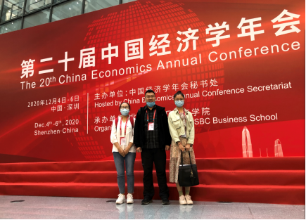 杨琛(右一)与导师及同门参加第二十届中国经济学年会