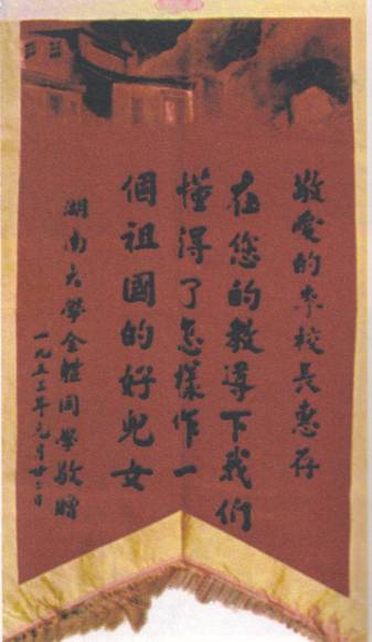 在解放以后,并入了民国大学、克强学院、南岳国立师范学院和美术专门学校,师生的成份十分复杂,我到校以后,首先抓住了思想改造这一环节,对全校进行思想教育,和湖大的党组织配合,进行了一系列的思想改造运动,发动全校师生参加土地改革、‘三反’与思想改造大运动等等。同时,又因为主持教务工作和总务工作的人都是一些旧人,我不能不兼管教务和总务方面的工作。在湖大期间,我几乎‘事必躬亲’,因此,我暴露了许多缺点,最主要的缺点是:性情急躁,希望在很短的期间把学校办好;还有,对群众的联系很差。这两个主要的缺点,在思想改造运动期间,我对全校作出了检讨。”