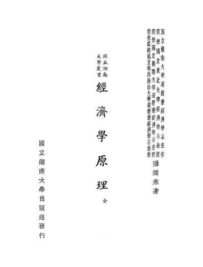 國立湖南大學法學院叢書之經濟學原理_潘源來國立湖南大學民3705初版