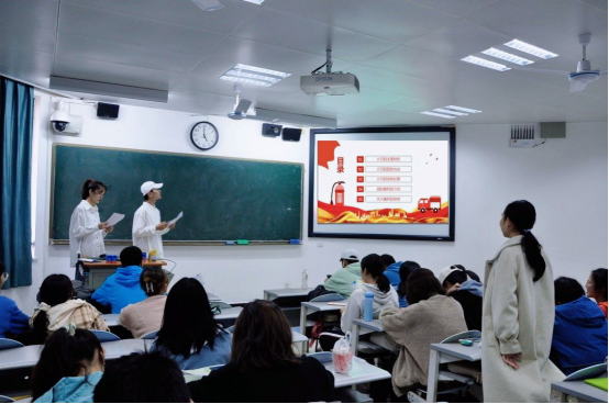 本次教育活动分为两个部分。第一部分,本科2021级辅导员胡煊赫面向2021级全体同学举办了消防安全讲座,宿舍园区火灾为实例,通过播放消防短片及知识讲座的形式,从如何检查消除安全隐患、如何正确报火警、如何扑救初期火灾、如何正确逃生等几个方面进行讲解,不仅增强了学生的消防安全意识,还加深了对火灾危害的认知。