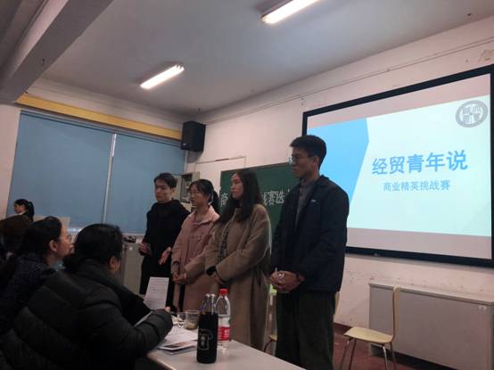 2018年12月18日14:30,一场异彩纷呈的经贸青年说系列活动之商业精英挑战赛在行政楼601室正火热开场。担任本次赛事评委的有成人抖音