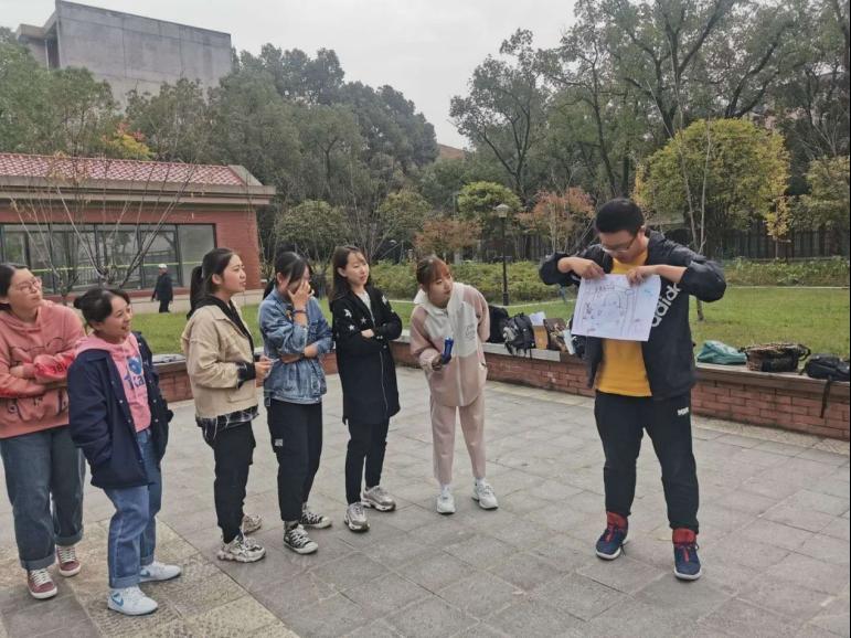经过简单的暖身活动,各小组进入第一个环节:“记忆中的你”。小组成员先进行自我介绍,需记住彼此的名字和兴趣爱好,若答错则进行“真心话大冒险”。“真心话”增进了同学们间的了解,“大冒险”在轻松欢快的氛围中结束。随后进行“我是画家”环节,各小组成员在有限时间内依次绘画,共同完成一幅名为“我的大学”的作品。画面缤纷丰富,也有不少同学画下曾经共同的记忆。
