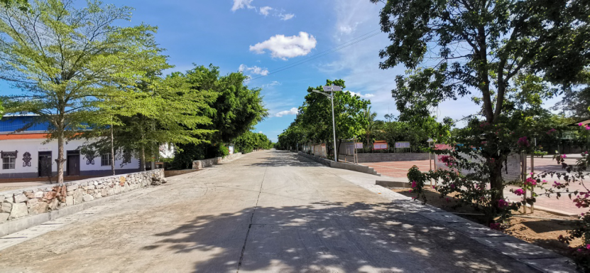 《公民教育与社会实践》课程要求大学生走进易地扶贫搬迁贫困村、了解当下扶贫工作进展、为打赢脱贫攻坚战畅言感想的号召,做到知行合一、学以致用,经济1902班林盈、陈令仪,经济1903班李大杰,国贸1902班梁珏玮,国贸1903班钟乙禾五位同学于2020年7月19日走进海南省昌江黎族自治县水富村,探索易地扶贫搬迁给这个走出了大山的贫困村所带来的变化与新生。