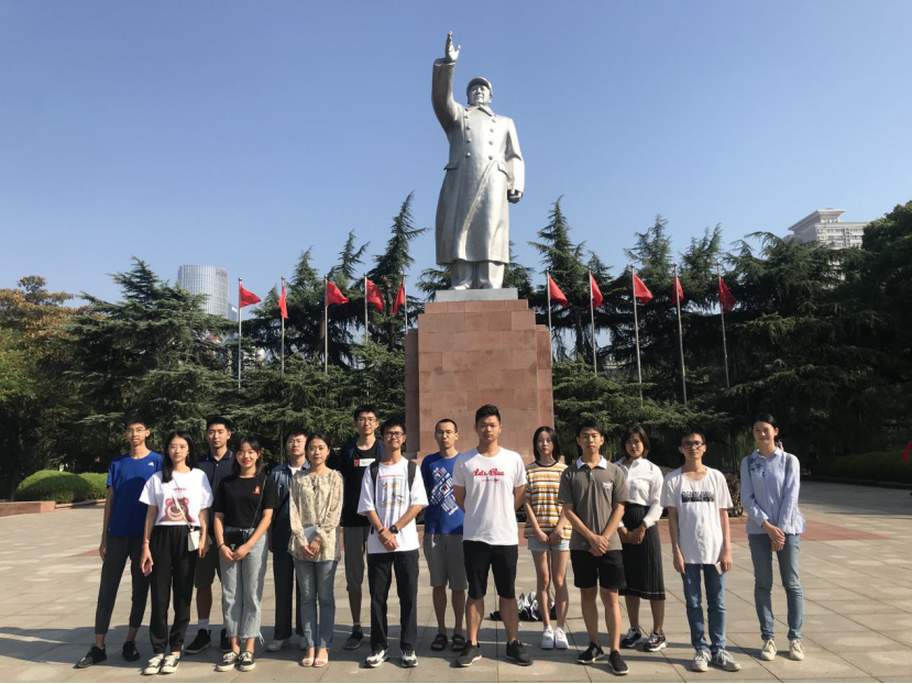 上午9:10,经济1702团支部到达中共湘区委员会旧址进行参观。一进入旧址,毛泽东主席指点江山的雄伟雕塑就映入眼帘,支部成员们也被这强大气场感染,并且提出全体成员在此合影留念的建议。阳光灿烂,青春正好,五星红旗在风中飘扬,莘莘学子在时代的前方,时代在更替,使命在传承。