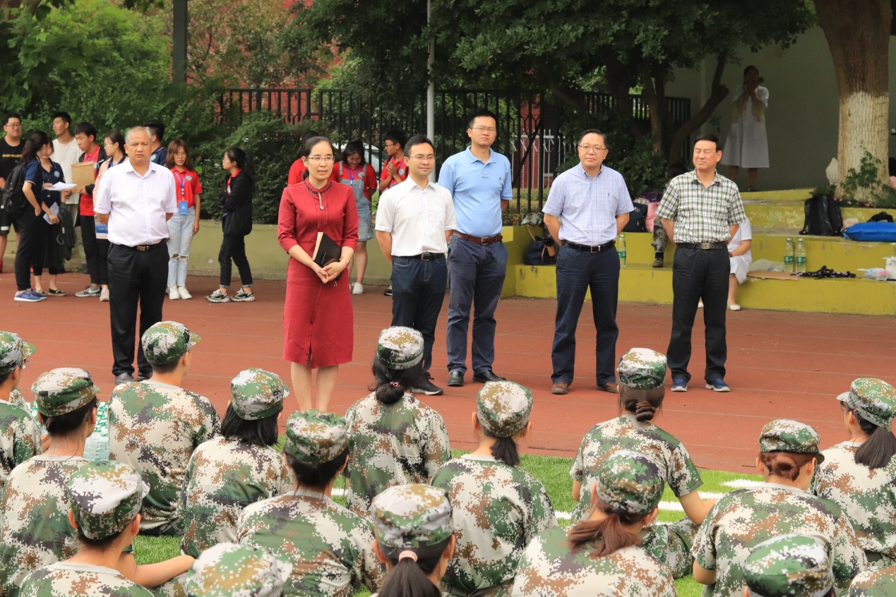 军训已经过半,经贸院的同学们精神抖擞,以热烈的掌声欢迎院领导的到来。首先,院领导们纷纷与教官们、班级助理们握手,对新生的第一任老师表示真挚的感谢,是他们用行动锻造了同学们的思想,磨炼了同学们的毅力,为同学们上好“开学第一课”,同时也为他们今后的大学生活打下坚实的基础。