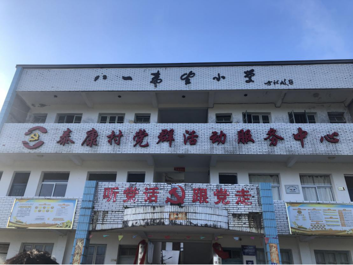 第二站,实践团来到了泰康村八一希望小学进一步学习,较为破落的小学期已经长满了杂草,仿佛沉淀着当年的故事。刘希华书记介绍到,泰康村八一希望小学是中国第一批的八一希望小学,由中国人民解放军一角一分、自掏腰包捐献出来的,希望小学的建立给当地村落教育发展带来了希望,承担了培养青少年的重要历史责任。由于近年来大量年轻人外出务工,学校仅存有1名教师,4名学生,再过一段时间,可能就会关停。在阳光的照耀下,小学教学楼的墙壁显得有些陈旧,但八一精神却随着太阳熠熠生辉,这里的一砖一瓦无不激励着实践团的同学们将小我融入大我,将青春献给祖国的理想抱负。