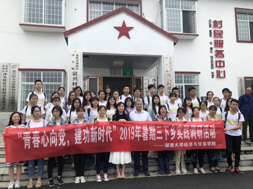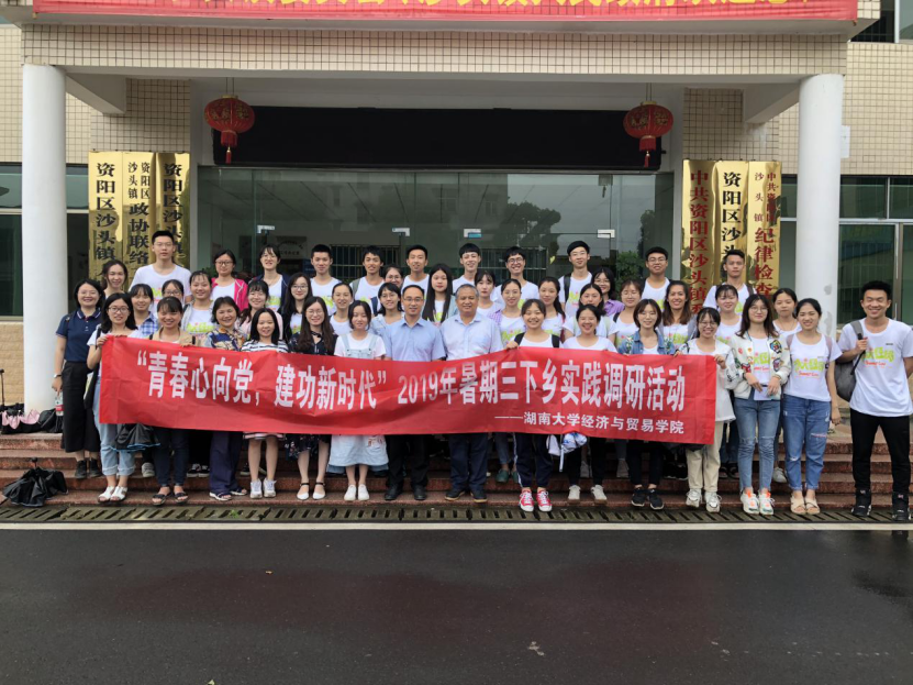 组织2019年暑期“三下乡”社会实践服务团40余人,于7月9日前往历史悠久、文化底蕴深厚的益阳市资阳区沙头镇开展课题式社会实践活动,为新农村建设助力。