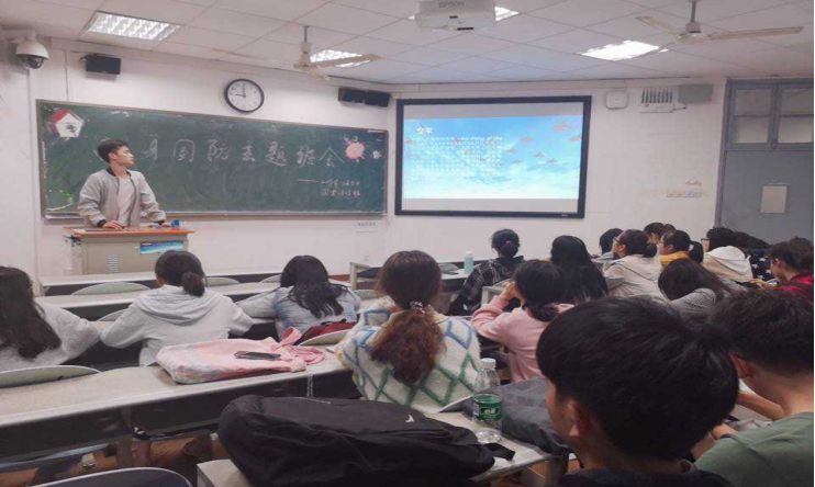 首先,徐政杰同学带领同学们以PPT展示和观看国防视频一起了解国防相关的知识。参军入伍是大学生增强国家意识、社会责任感和实践能力的重要途径。参军入伍对于大学生提升思想境界、锻炼意志品质、造就健康体魄、拓展全面素质、提高综合能力、健康成长成才具有重要意义,为大学生未来的人生和事业发展奠定坚实的基础。同学们要以此次回信精神为指引,努力践行习近平总书记提出的要求和希望,以青春之我创造青春之国、青春之军,在实现强国梦、强军梦的伟大实践中施展才华、淬炼成钢,书写绚烂、无悔的青春篇章。