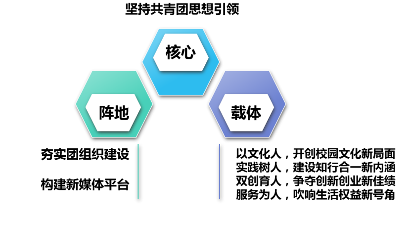 学院以保持和增强政治性、先进性和群众性为目标,努力实现在引领青年、服务青年、培养青年上取得重要成效,探索实践“1个核心、2个阵地、4个载体”的团学工作体系。“1个核心”是指坚持思想引领的核心地位,“2个阵地”是指联动团组织建设阵地和线上新媒体网络平台,“4个载体”是指通过校园文化、实践志愿、双创精神和权益服务内容建设。学院围绕“124”团学工作体系,深入贯彻党团精神,结合学院专业特色,为培养“经世致用,明德维新”的经济学人才、推进学院双一流建设不懈努力,体系建设在校级、省级等媒体平台上均有报道。学院团委连续三年荣获校级五四团委、校级优秀学生会,团委书记蔡婕萍连续两年获校团学先进工作者。