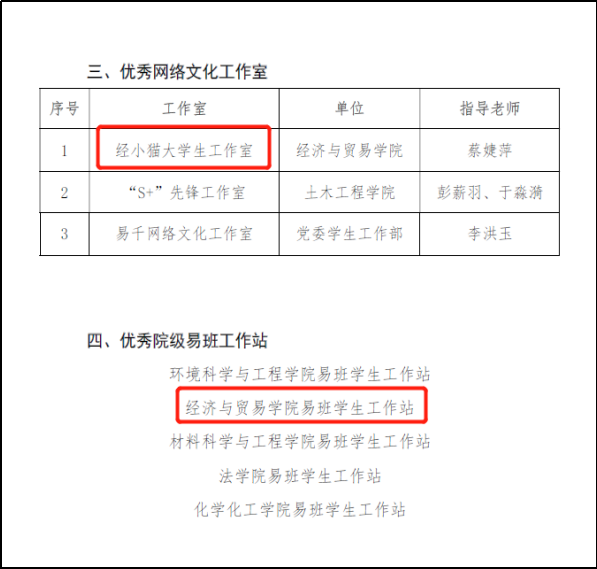 学院团委加强新媒体阵地建设,鼓励学生自主参与,在加强学生思想道德教育和学风建设方面取得了不菲的成绩。紧随青年需求,学院通过微课堂、短视频、微网文、H5等对主流意识形态、专业知识进行包装,鼓励学生自行参与、制作与传播,连续多年承办学校网络文化节活动;整合新媒体阵地,培育网络干部。学院构建“经小猫大学生工作室” 1+2+N网络育人平台,开展经小猫微课堂,力争培养一批网络思想引领“把关者”,在时事热点时期主动发表观点,以掌握舆论领导权。学院网络育人取得实效,连续三年荣获校网络文化节优秀组织奖,两年荣校优秀易班工作站,荣获校党的十九大精神宣传专栏优秀奖、校优秀团学媒体平台等多项荣誉。