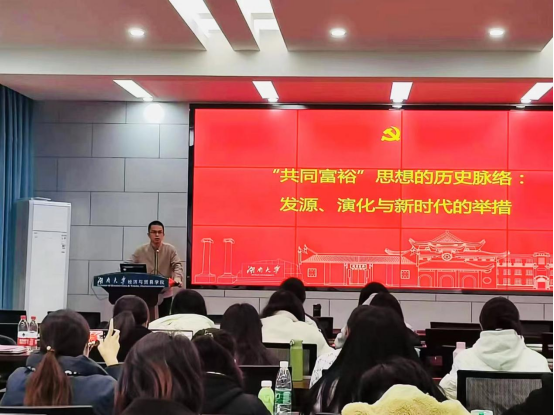 徐航天以新中国成立、改革开放和十八大的召开为时间节点,从“共同富裕”发展的四个时期以及“发源-演化-新时代举措”三个维度,梳理了“共同富裕”思想的历史脉络,表明共同富裕是中国特色社会主义的本质要求,是一个长期的历史过程。随后结合不同区域经济发展差异和区域经济学相关知识,重点讲述了改革开放“先富带后富”政策转变的重要意义。