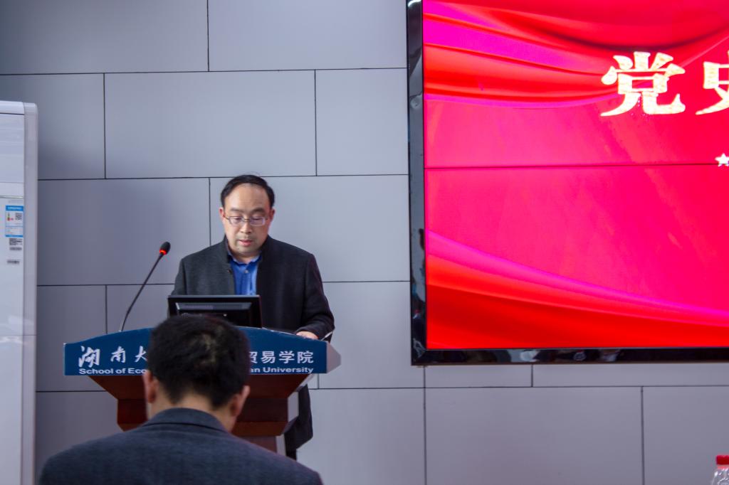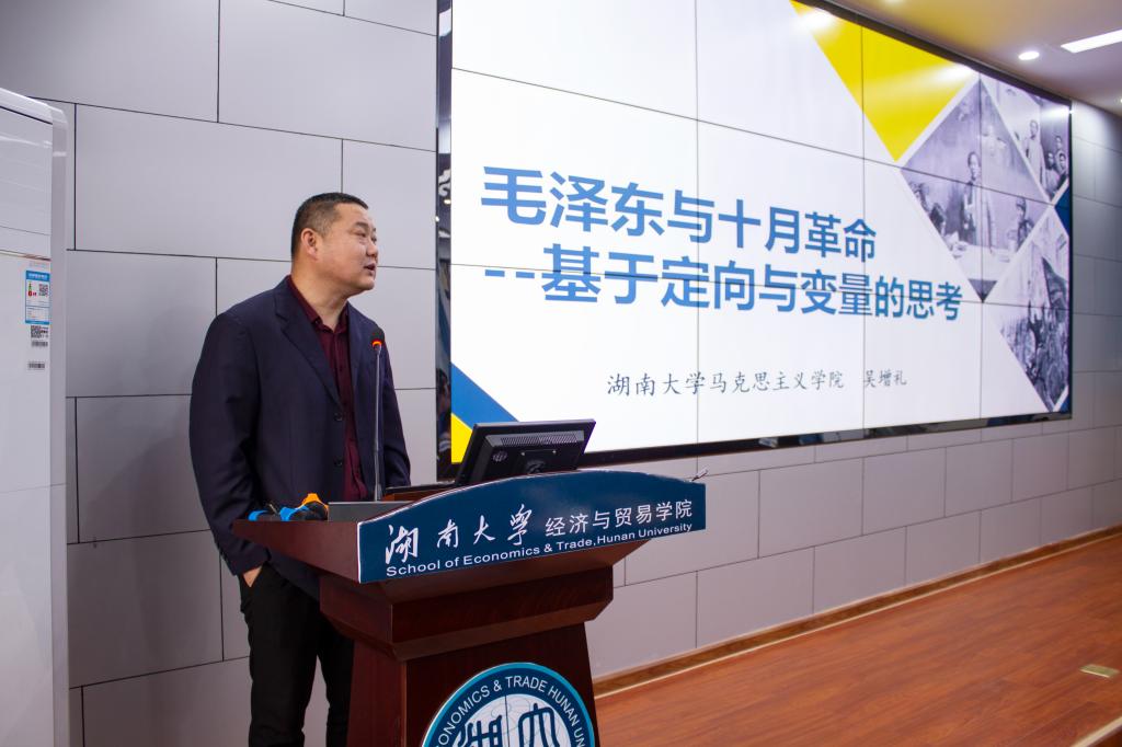 马克思主义学院副院长吴增礼以“毛泽东与十月革命——基于定向与变量的思考”为主题,生动讲授了党史专题党课。吴增礼将党史与经济学相结合,通过“定向”和“变量”的阐述生动介绍了十月革命时期毛泽东同志为何选择共产主义道路的这一段历史。