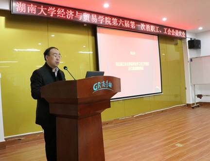 许和连在工作报告中,回顾了2019年重点工作,学院围绕加强人才培养,提升人才培养质量,加强师资队伍建设,做好外引内培,加强科学研究,对标一流重点突破,加强智库建设,发挥社会服务功能为中心,重点做好了围绕立德树人根本任务,构建三全育人格局;着力提升教育教学质量,做好课程思政建设;努力推进国际交流合作,驱动国际化新发展等特色工作。他强调,2020年是“十三五”规划收官,要科学评估总结经验和教训,认识到困难和不足,迎难而上,科学做好“十四五”规划,以智库和中非经贸研究为突破,争取为国家战略贡献经贸智慧。