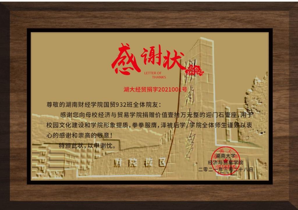 It is reported that in the celebration of the 20th anniversary of the establishment of the School of Economics and Trade, this is the first in-kind donation initiated by the alumni of the first established class to boost the environment of the school and promote the construction of campus culture. The "Two firsts" will bring a good demonstration effect of the development of the school's liaison business.