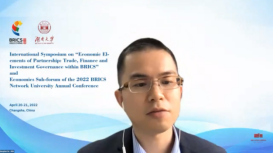 Junjun Hou, the dean of School of Economics and Trade, Hunan University, attended the opening ceremony and delivered a speech. He introduced the international development strategy of the college, as well as its relationship with BRICS universities, and put forward suggestions and thoughts on promoting practical and efficient cooperation among BRICS Network Universities. The seminar was divided into three sub-forums on the evening of April 20 and the afternoon of April 21.